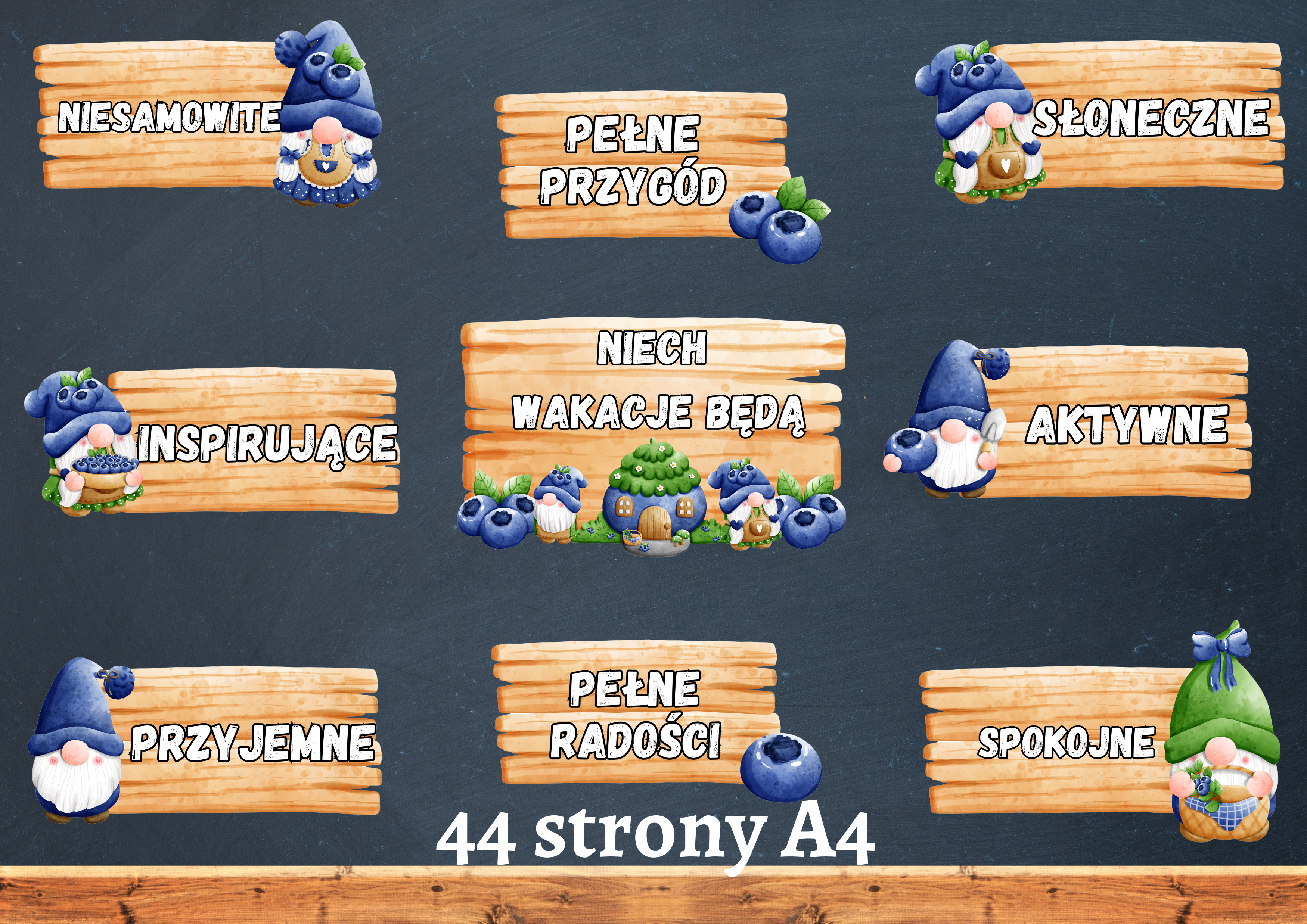 – jedna grafika (tabliczka z napisem i jagódkami) na A4,