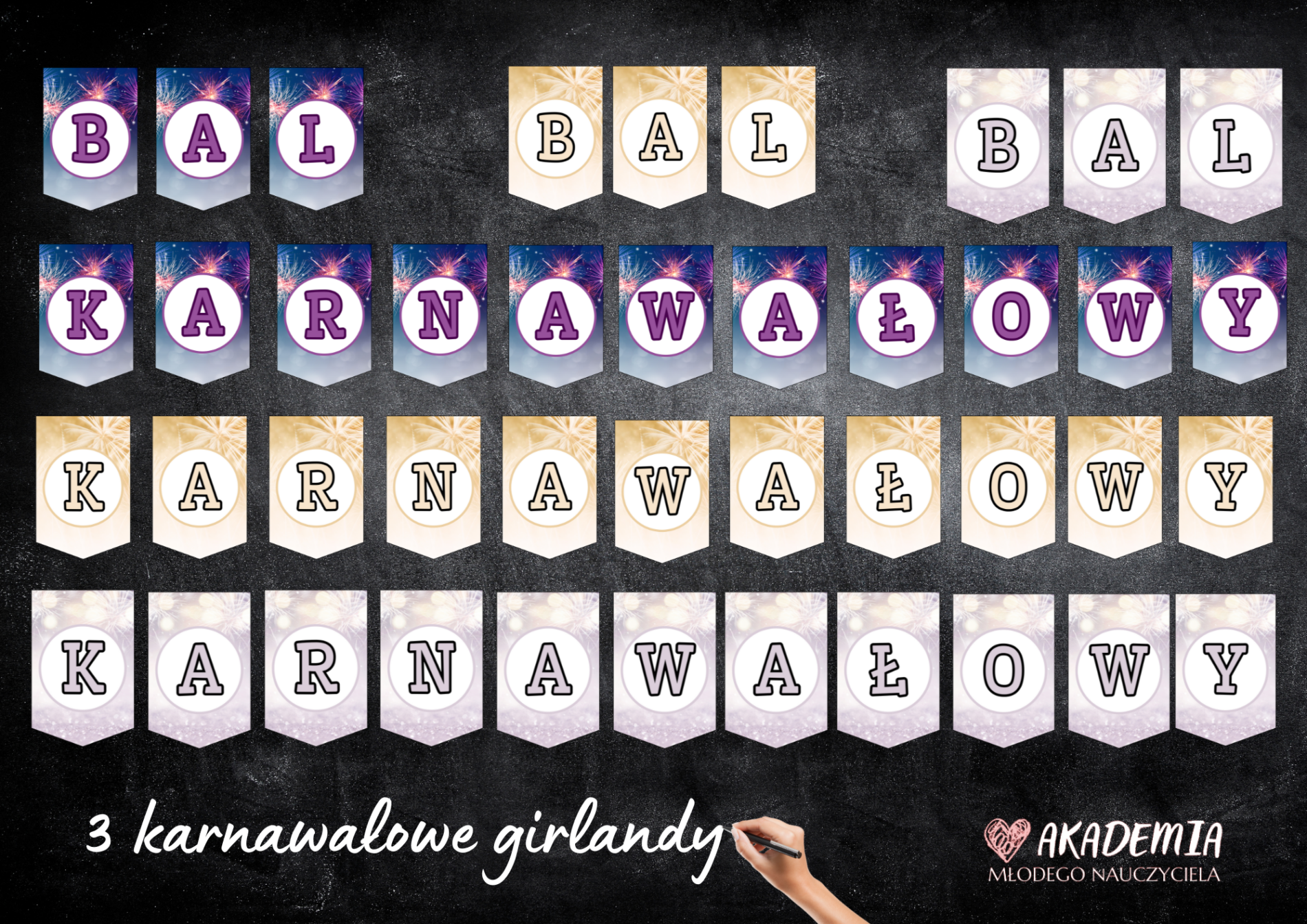 Dodaj wyjątkowego klimatu do swojego balu karnawałowego dzięki zestawowi trzech girland! Każda girlanda ma unikalne tło, idealne do stworzenia wspaniałej atmosfery na imprezach dziecięcych, szkolnych lub w przedszkolach. Girlandy są doskonałą dekoracją, która nadaje przestrzeni radosny i kolorowy wygląd, podkreślając magię karnawałowej zabawy.